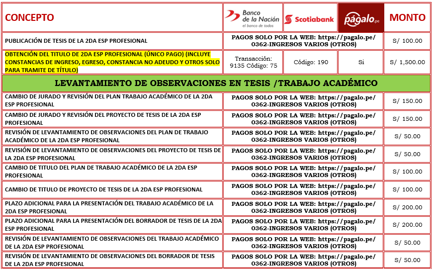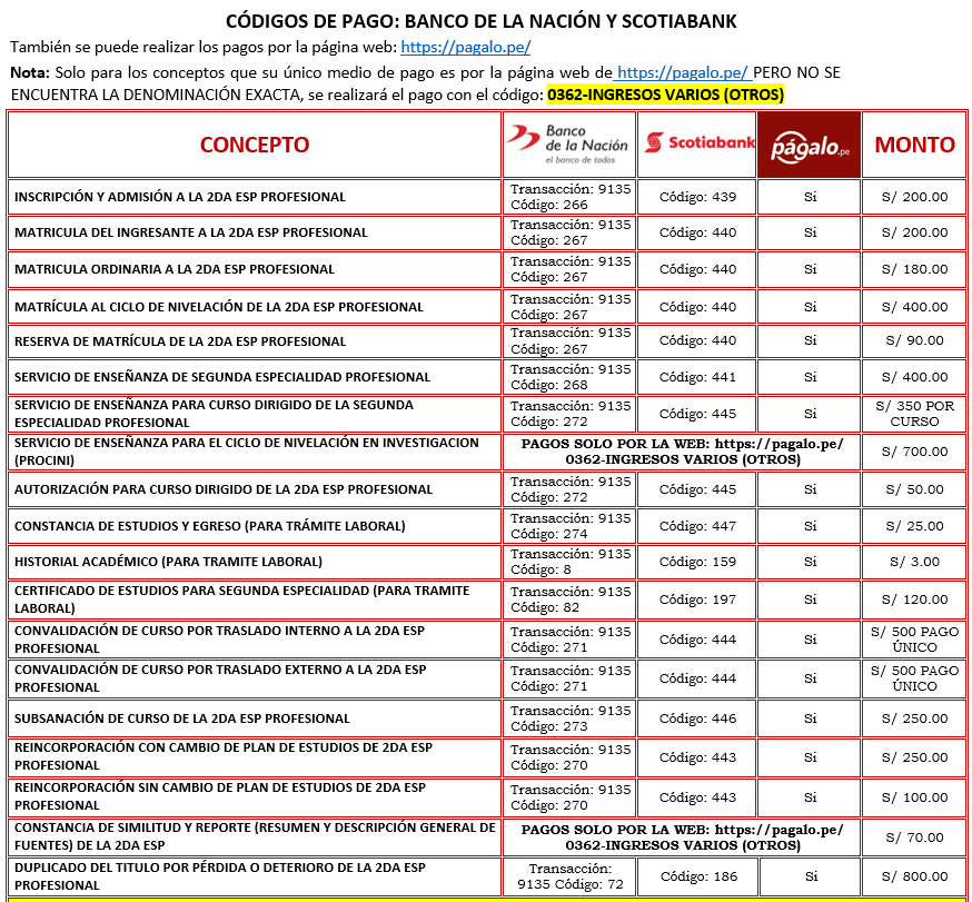 CÓDIGOS DE PAGO: BANCO DE LA NACIÓN Y SCOTIABANK