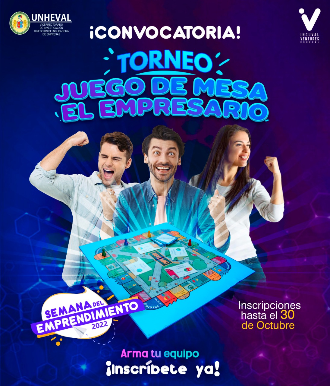 📣Atención emprendedor📣 ✨🎉LLEGÓ EL TORNEO QUE ESPERABAS🎉✨ ✨"Juego de mesa el empresario"✨ 💪¡Arma tu equipo e inscríbete ya!PARTICIPAN: ✅Estudiantes de #colegio ✅Estudiantes de #Universidades e #institutos ✅Alumnos de la UNHEVALINSCRIPCIONES: 📅Hasta el 30 de Octubre🎊Grandes premios y sorpresas🎊 | |  |