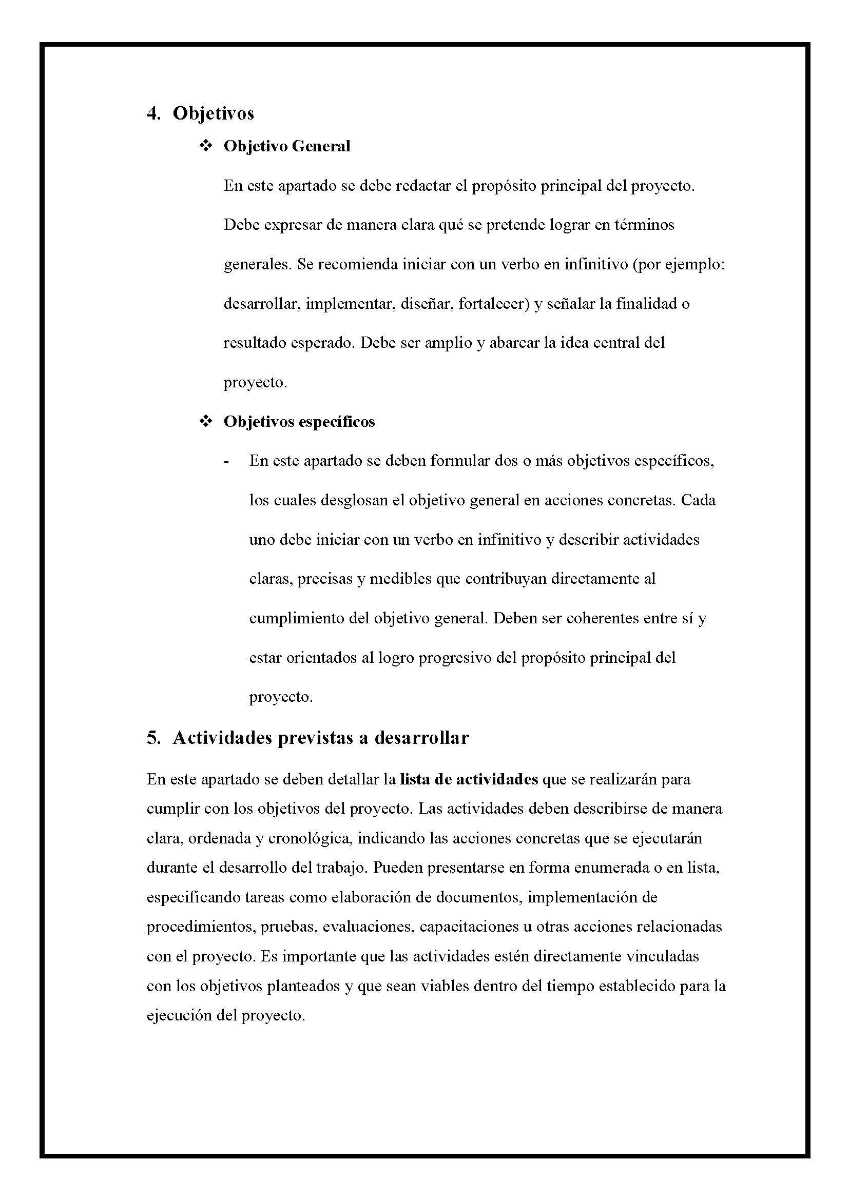 5. Objetivos (general y específicos)