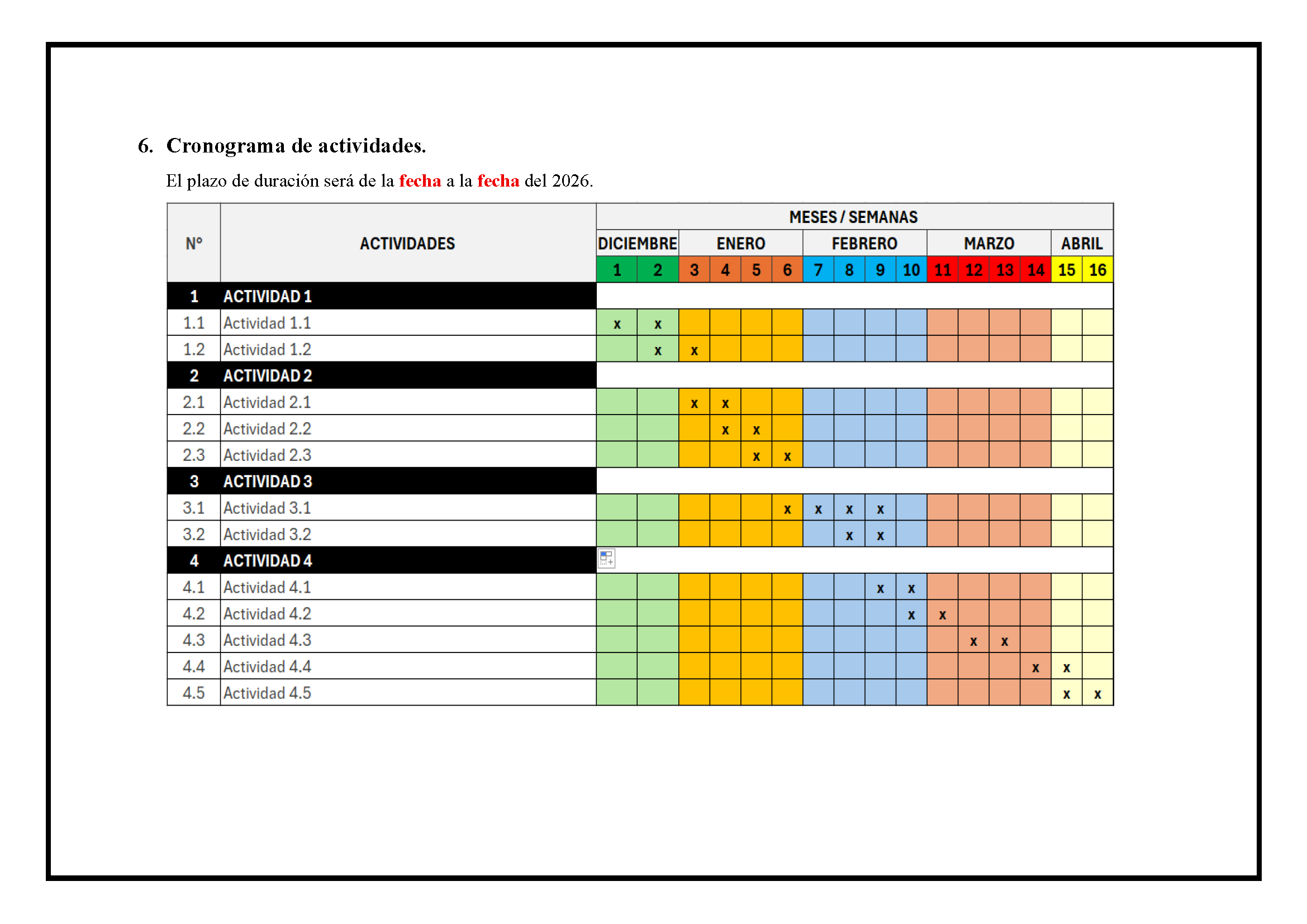 6. Actividades previstas