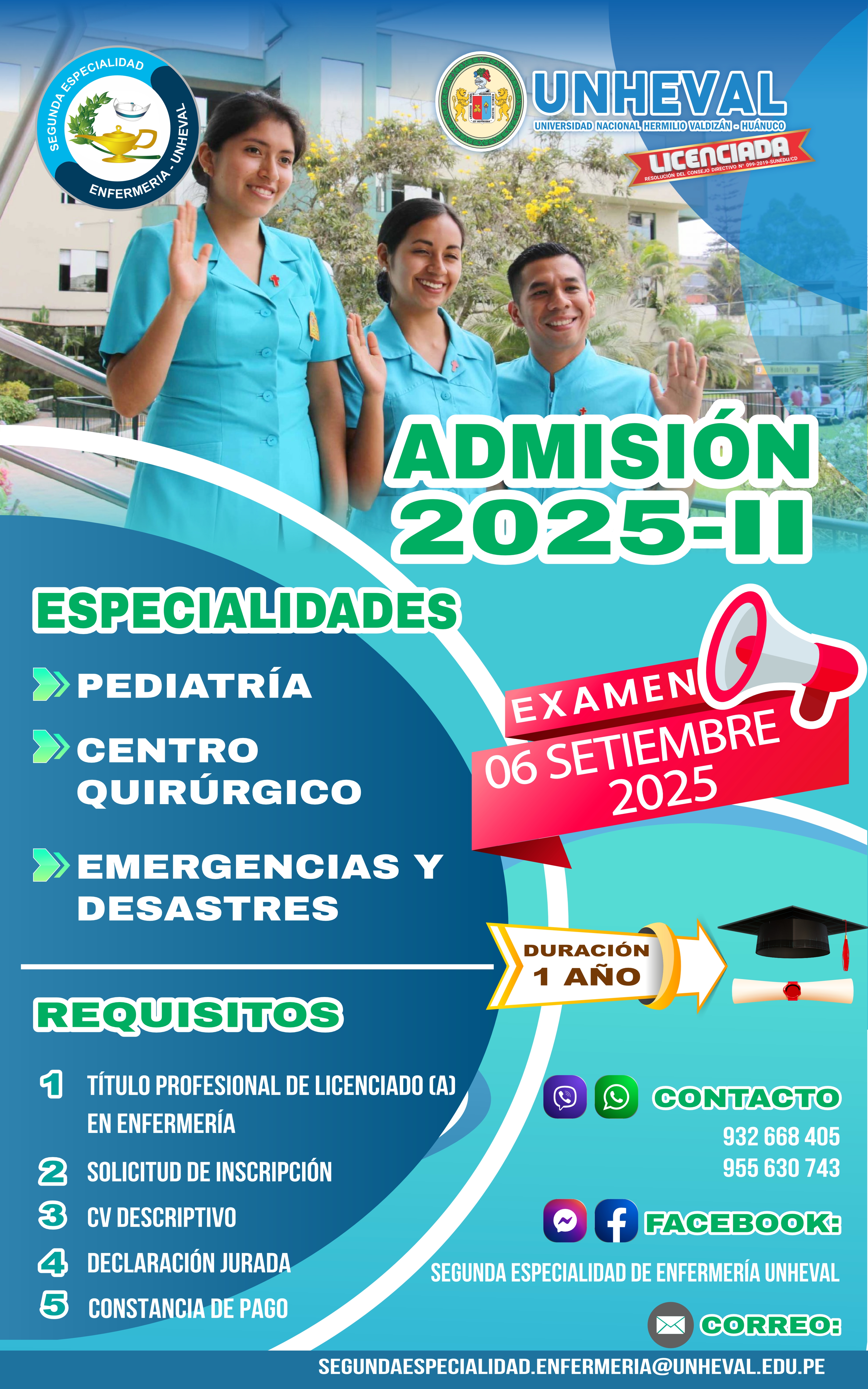 | REQUISITOS:1. Solicitud de Inscripción para la Admisión 2025-I - click aqui 2. Declaración Jurada - click aqui 3. Currículo vitae descriptivo simple 🌐 Inscripciones aquí: http://admisionseg.unheval.edu.pe/home |
